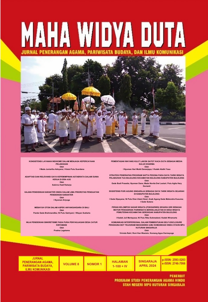 Puri Agung Singaraja is a historical building left by the Kingdom of Buleleng with historical potential that should be able to attract tourist visits, but now the castle is more often used as a prewedding and photoshoot location than as a historical tourist visit destination. The phenomenon of shifting tourist visit motivation and the lack of educational institutions that utilize the historical potential of the castle, this study was conducted to analyze the existence of Puri Agung Singaraja as a historical tourist attraction. This study aims to analyze the existence of Puri Agung Singaraja as a historical tourist attraction, analyze constraints and solutions related to existence, and the role of stakeholders in supporting the existence of the castle. The data collection methods used were interviews, observation and documentation. The data that has been obtained is analyzed using qualitative interactive analysis methods through data collection, data reduction, data presentation and conclusions. The results showed that (1) Puri Agung Singaraja still exists but there are several influencing factors, namely economic factors, human resources, tourist visits, access and innovation; (2) the obstacles faced are the lack of management funds, human resources, tourist visits and tourist access; (3) Stakeholders play an important role in supporting the existence of castles according to the fields and capabilities of stakeholders.